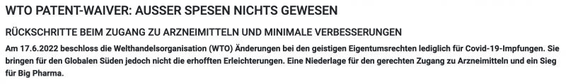 WTO Patent-Waiver: Außer Spesen nichts gewesen