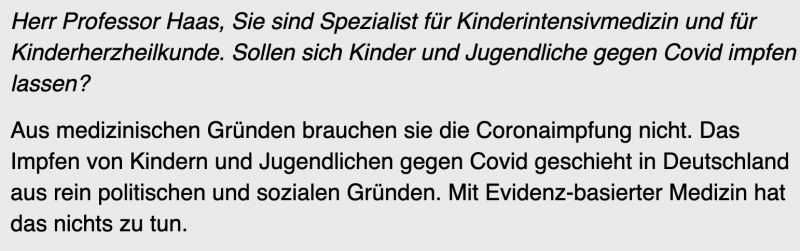 Direktor einer Münchner Uni-Kinderklinik: "Impfen von Kindern [gegen COVID] ist medizinisch nicht zu rechtfertigen"