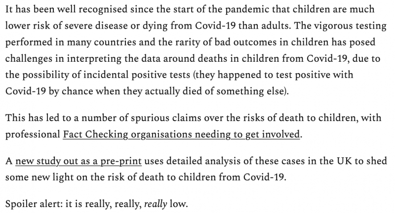 "The risk of any child dying from a Covid-19 infection is extremely low, and keeps getting lower" - passend zur aktuellen Diskussion über Kinderimpfungen - von Alasdair Munroe