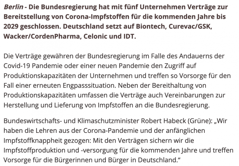 COVID-Impfstoff satt - Bundesregierung kauft Impfstoffe bis 2029 (in Worten: zweitausendundneunundzwanzig)
