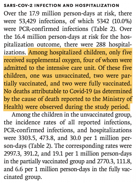 Israelische Studie zur Impfstoff-Effektivität bei Kindern, mehr als 250.000 Kinder, Studiendauer 78 Tage.