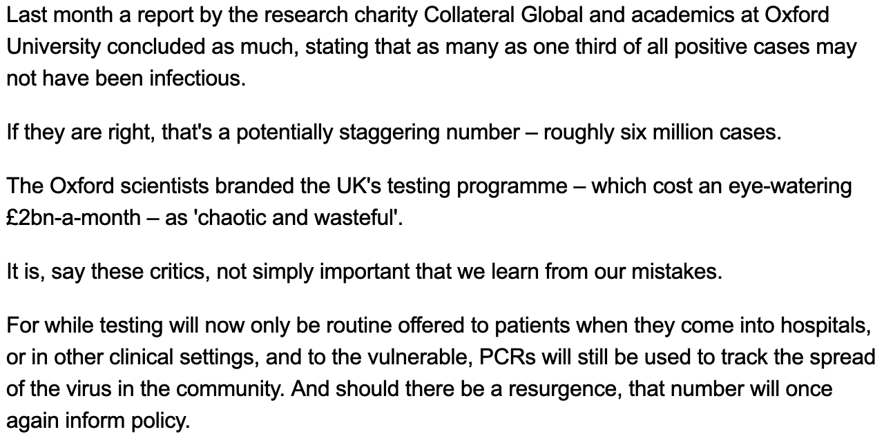 Ein langer Text auf Englisch, der ggf. aber auch eine Übersetzungs-App lohnt, mit umfassendem Blick auf die völlig absurde Rolle, die PCR-Tests in der Pandemie spielten und (z.B. in D) immer noch spielen.