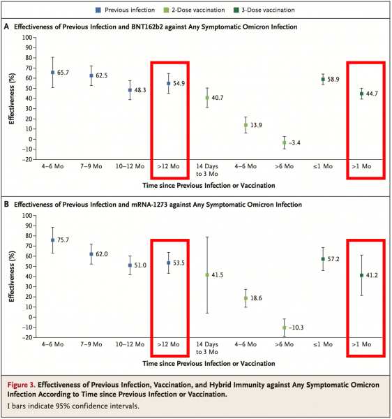 Genesen: Schutz ist nach einem Jahr noch besser als einen Monat nach der dritten Impfdosis... (PS: Hybride Immunität wird überschätzt...)