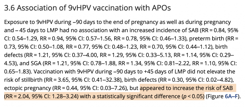 Eine systematische Literaturübersicht fand für die 9-valente HPV-Impfung (Gardasil9™, auch in D empfohlen und verwendet) ein verdoppeltes Risiko für Fehlgeburten (SAB, spontaneous abortion), wenn die Impfung im Zeitraum zwischen 90 Tage vor und 45 Tage nach der letzten Menstruation verabreicht wurde.