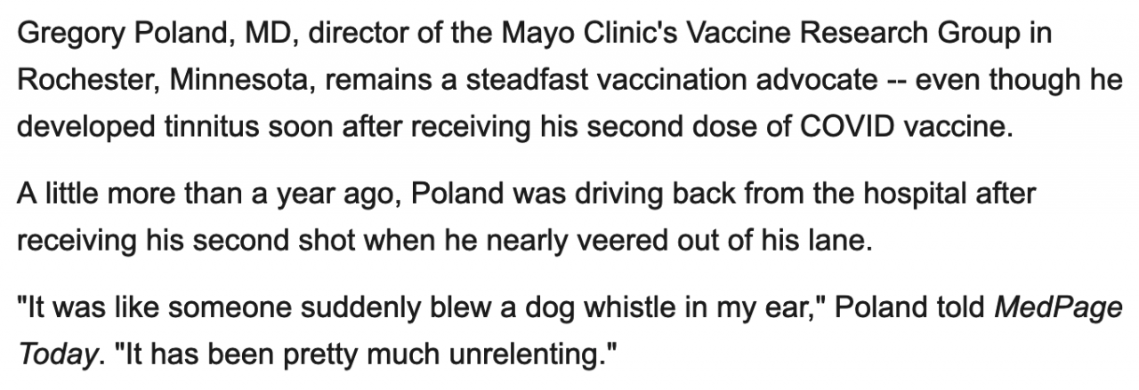 Impfforscher der Mayo-Klinik fordert mehr Forschung zu Impf-Nebenwirkungen - nachdem er nach der COVID-Impfung einen Tinnitus entwickelte...