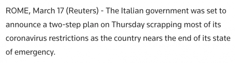 The Italian government was set to announce a two-step plan on Thursday scrapping most of its coronavirus restrictions as the country nears the end of its state of emergency.