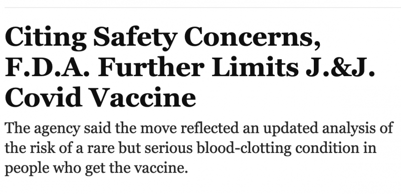 J&J - FDA schränkt Verwendung wegen VITT weiter ein - Anwendung nur noch, wenn andere Impfstoffe medizinisch nicht möglich sind