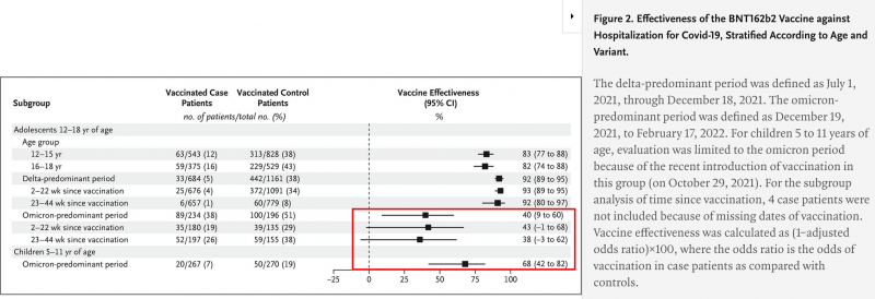 - Last not least: trotz der Selbstverpflichtung des NEJM, bei derartigen Interventionsstudien Risikoveränderungen immer in relativen und absoluten Werten anzugeben, fehlen letztere. Das wiegt besonders schwer, da das absolute Risiko für Kinder und Jugendliche, wegen COVID hospitalisiert zu werden, sehr gering ist. Damit sind auch vermeintlich eindrucksvolle relative Risikoverringerungen nur von sehr begrenzter klinischer Relevanz.