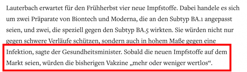 Lauterbach: "bisherige Impfstoffe ab Frühherbst wertlos" - was ändert sich "ab Frühherbst"? - richtig: nichts...