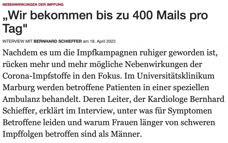 Leiter einer Post-COVID-Ambulanz: "Wir sehen die Impfnebenwirkungen als Modellerkrankung für COVID-19"