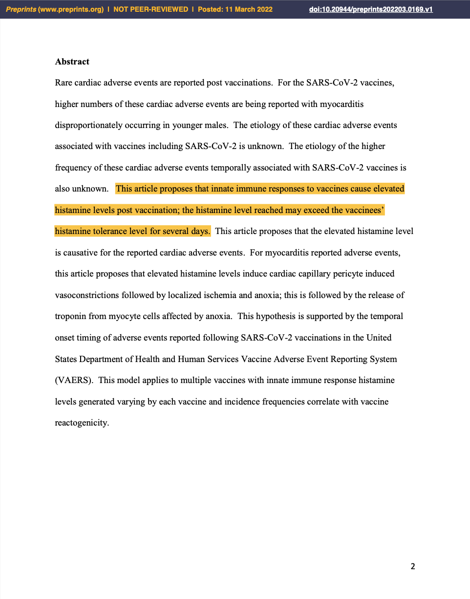 Vaccines Associated Cardiac Adverse Events, including SARS-CoV-2 Myocarditis, Elevated Histamine Etiology Hypothesis[v1] | Preprints