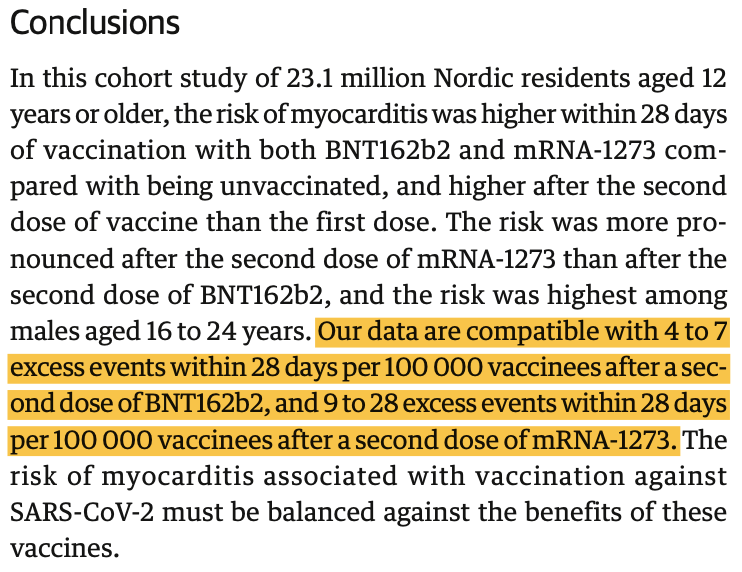 "SARS-CoV-2 Vaccination and Myocarditis in a Nordic Cohort Study of 23 Million Residents Myocarditis after mRNA vaccination was rare in this study cohort and even among young males."