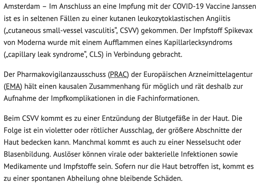 Neue UAW offiziell: Capillary leak nach Spikevax, Gefäßentzündungen nach Jansen...