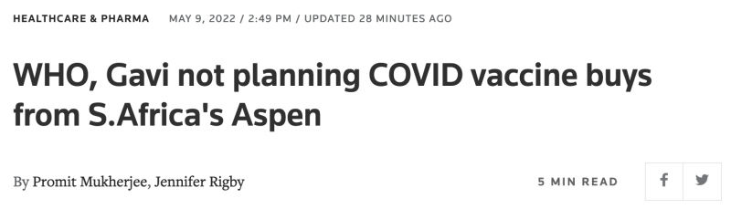 WHO, Gavi not planning COVID vaccine buys from S.Africa's Aspen | Reuters