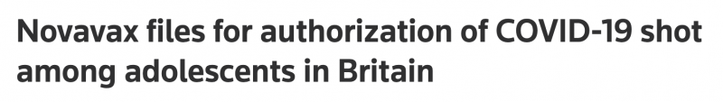 Novavax Inc said on Wednesday it had filed an application with Britain's drugs regulator for the authorization of its COVID-19 vaccine among adolescents aged 12 and older.