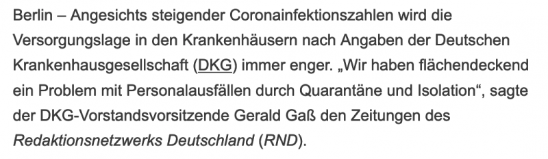 Quarantäne-Regelungen des Personals belasten Krankenhäuser