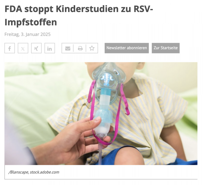 RSV - FDA stoppt alle Kinderstudien mit mRNA-Impfstoffen gegen RSV