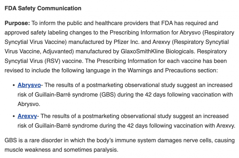 FDA Requires Guillain-Barré Syndrome (GBS) Warning in the Prescribing Information for RSV Vaccines Abrysvo and Arexvy | FDA