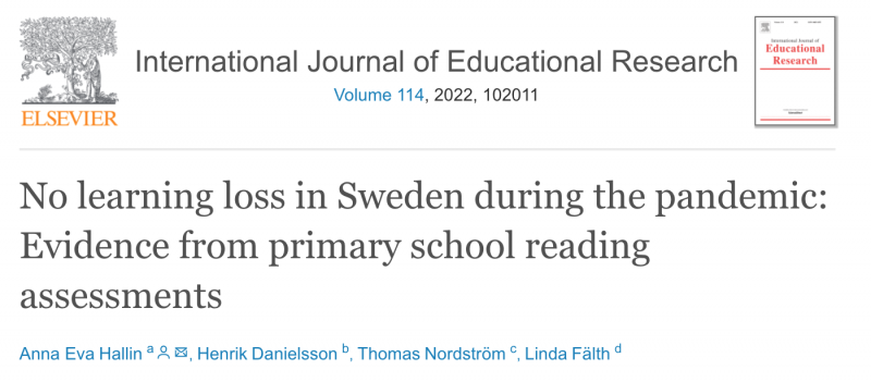 Schweden: Keine Schulschließungen - kein Lernrückstand. Wer hätte das gedacht....