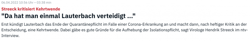 Streeck zum Isolations-Salto: "Da hat man Lauterbach einmal verteidigt..."