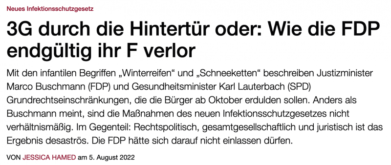 Neues Infektionsschutzgesetz - 3G durch die Hintertür oder: Wie die FDP endgültig ihr F verlor | Cicero Online