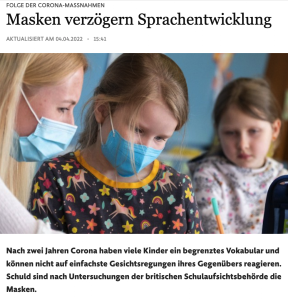 UK: Regierungsbehörde beklagt massive Entwicklungsverzögerungen bei Kindern durch die Maske - update mit FAZ-Artikel