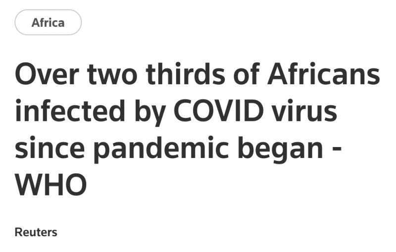 WHO: in Afrika mehr als 2/3 der Menschen mit SARS-CoV-2 infiziert während der Pandemie