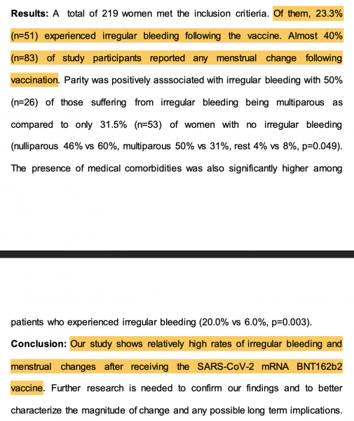 Zyklusstörungen nach mRNA-Impfung: "relatively high rates of irregular bleeding and menstrual change"
