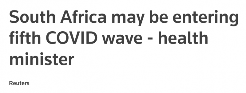 South Africa may be entering a fifth COVID-19 infection wave earlier than expected, after a sustained rise in infections over the past 14 days, Health Minister Joe Phaahla said on Friday.