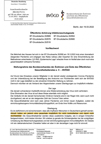 Ärztinnen und Ärzte des ÖGD: Impfpflicht nicht kontrollierbar und nicht durchsetzbar