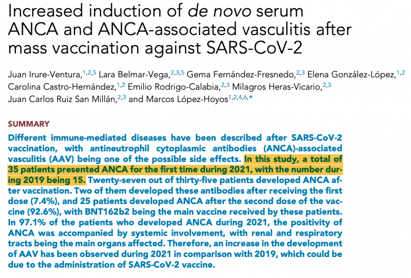 In einer kleinen, peer-reviewed veröffentlichten spanischen Studie beobachteten die Autoren einen für sie auffälligen Anstieg autoimmunologischer Erkrankungen im engen zeitlichen Zusammenhang mit der Covid-Impfung.