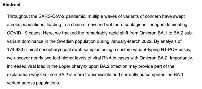 BA.2 - Viruslast im Schnitt wohl höher als bei BA.1