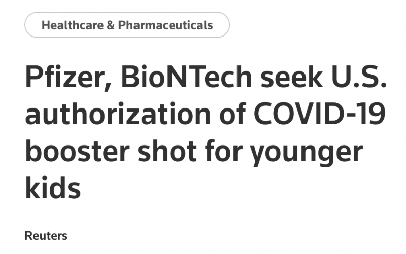 Pfizer, BioNTech seek U.S. authorization of COVID-19 booster shot for younger kids | Reuters