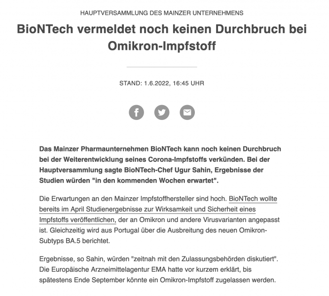BioNTech und sein Omikron-Impfstoff - gut, dass Impfstoff-Hersteller wenigstens Aktionären gegenüber ehrlich sein müssen...