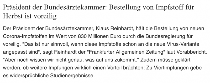 Bundesärztekammer kritisiert Lauterbachsche Impfstoffbestellung