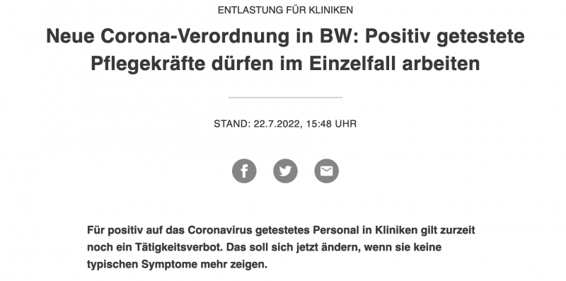 BW: Pflegekräfte dürfen trotz positiven Tests arbeiten, wenn sie ohne typische Covid-Symptome sind - klug und längst überfällig....