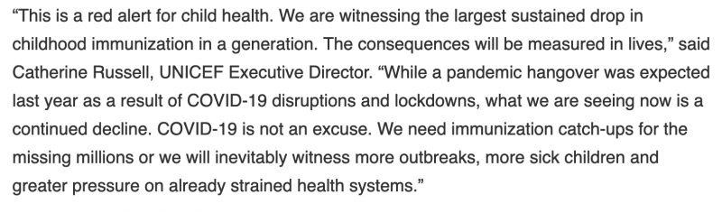 Coronoia wirft weltweite Impfbemühungen bei Kindern (bei den wichtigen Impfungen) um Jahrzehnte zurück - WHO beklagt die Folgen des eigenen hysterischen Alarmismus...