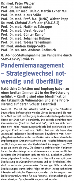 Coronoia - wirkliche Fachleute fassen den längst überfälligen Strategiewechsel auf wenigen Seiten zusammen...
