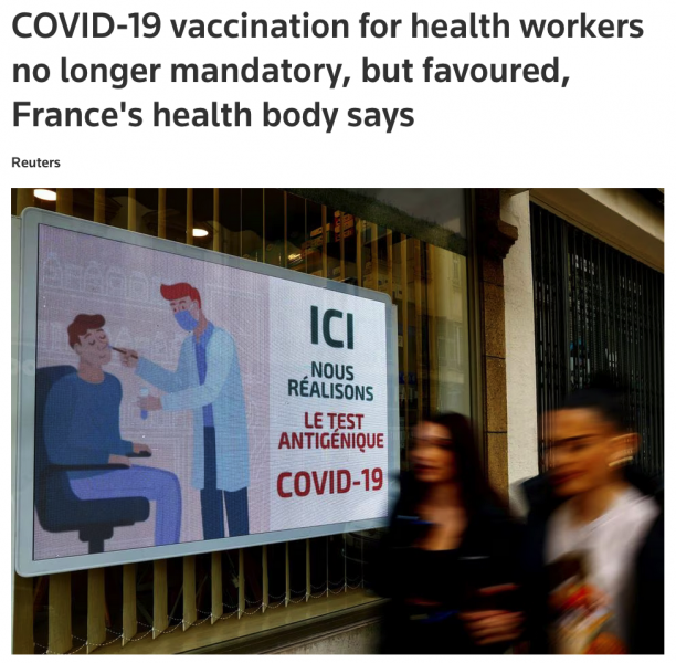 COVID-19 vaccination for health workers no longer mandatory, but favoured, France's health body says | Reuters