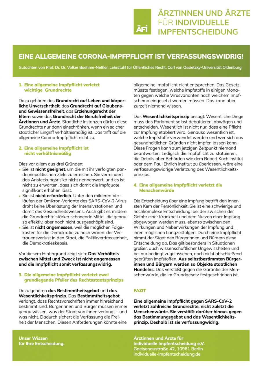 ... einem der renommiertesten Juristen für Öffentliches Recht in Deutschland in seinem aktualisierten Gutachten zur Allgemeinen Impfpflicht, dass der Verein "Ärztinnen und Ärzte für individuelle Impfentscheidung" heute vorstellte.
