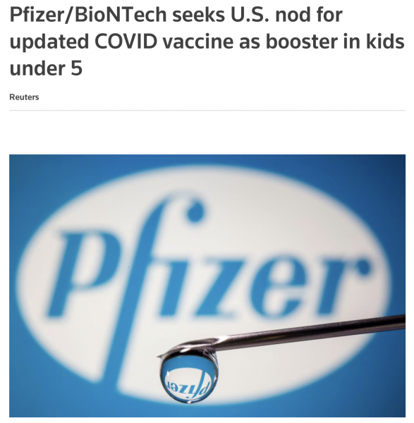 Pfizer/BioNTech seeks U.S. nod for updated COVID vaccine as booster in kids under 5 | Reuters