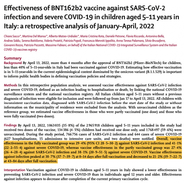 Covid-Impfung für Kinder: in italienischer Studie schlechter Schutz vor schweren Verläufen, noch schlechterer vor Infektion