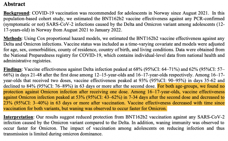 Vaccine effectiveness with BNT162b2 (Comirnaty, Pfizer-BioNTech) vaccine against reported SARS-CoV-2 Delta and Omicron infection among adolescents, Norway, August 2021 to January 2022 | medRxiv