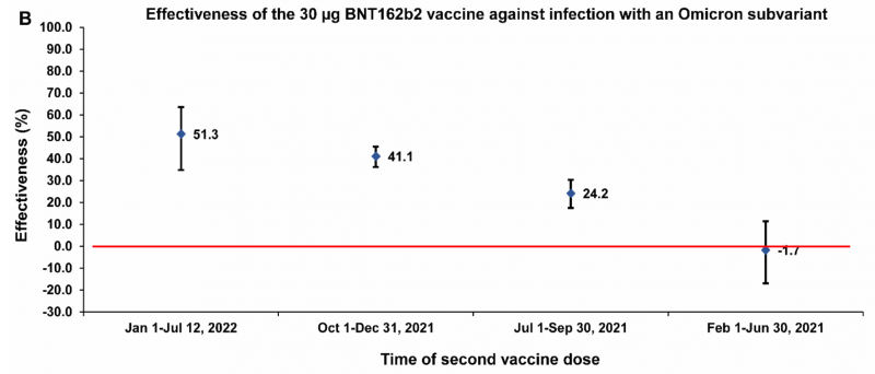 - fast 36.000 Jugendliche unter Omikron, mittlere Zeit des follow-up etwa 150 Tage; in der Gruppe der Geimpften trat eine kritische Infektion, in der Kontrollgruppe eine schwere und eine kritische Infektion auf