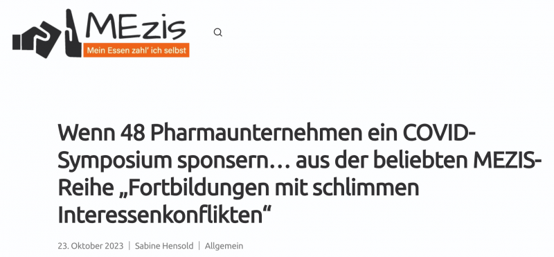 Unter dem Deckmantel der so genannten Paul-Martini-Stiftung richten zahlreiche Unternehmen von #BigPharma eine Covid-Fortbildung aus und beantragen dann noch die Anerkennung dieser Inkarnation von Interessenkonflikten als zertifizierte Ärztefortbildung (was gegen den Kodex der meisten Landesärztekammern verstößt).