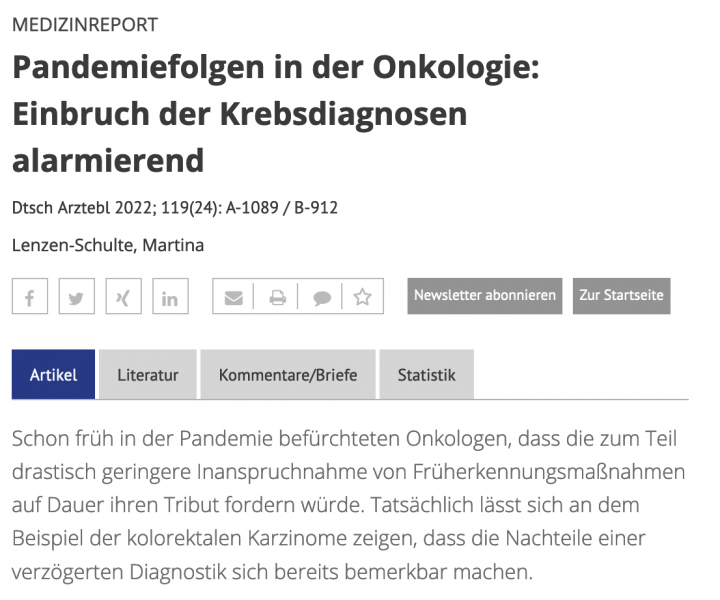 Der "alarmierende" Rückgang frühzeitiger Krebsdiagnosen ist nicht Folge der Pandemie, sondern der Coronoia