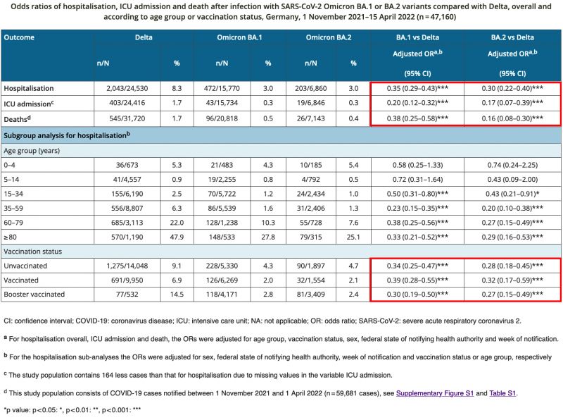 Übrigens: es ging um eine mehr medizinhistorische Fragestellung, ob nämlich BA.1 und BA.2 tatsächlich auch in Deutschland (wie auch sonst überall auf der Welt schon vor Monaten nachgewiesen...) milder verliefen als Delta...