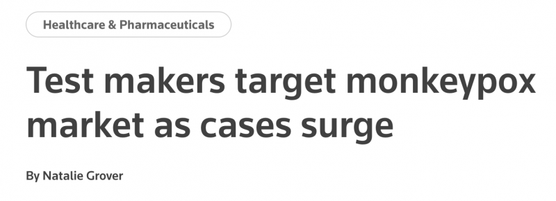 Diagnostic companies are racing to develop tests for monkeypox, hoping to tap into a new market as governments ramp up efforts to trace the world's first major outbreak of the viral infection outside of Africa.