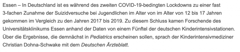 Der Preis der Maßnahmen: Suizidversuche unter Jugendlichen in D während des zweiten lockdowns fast verdreifacht
