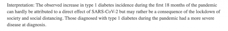 So lautet zumindest das Ergebnis einer finnischen Registerstudie (preprint), wobei die Autoren einräumen, dass der zu Grunde liegende Pathomechanismus ungeklärt sei. Zusätzlich fiel auf, dass die Erstmanifestationen eines Diabetes mellitus Typ I ("insulinpflichtiger Diabetes") während der Pandemie einen schwereren Verlauf nahmen.